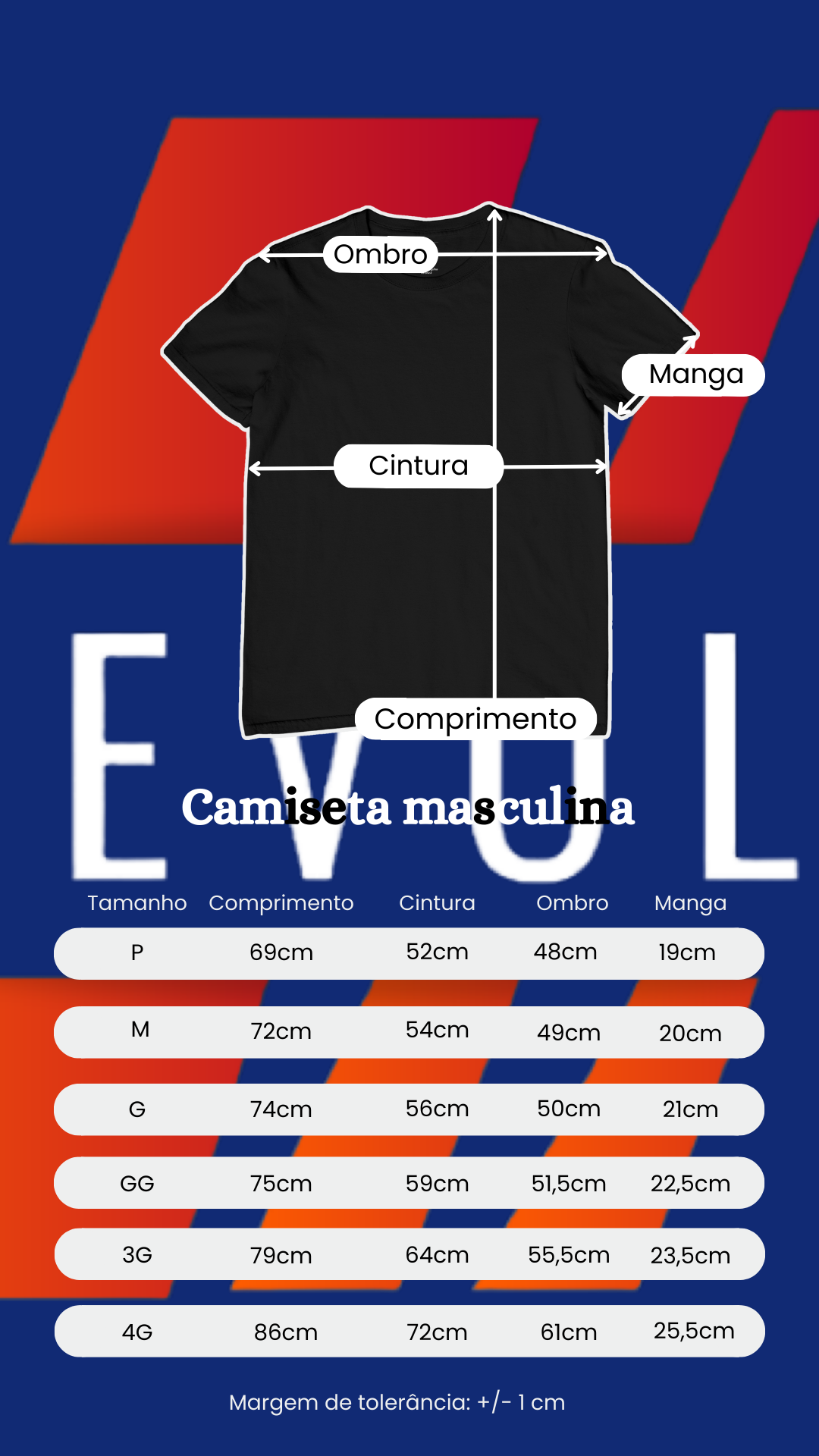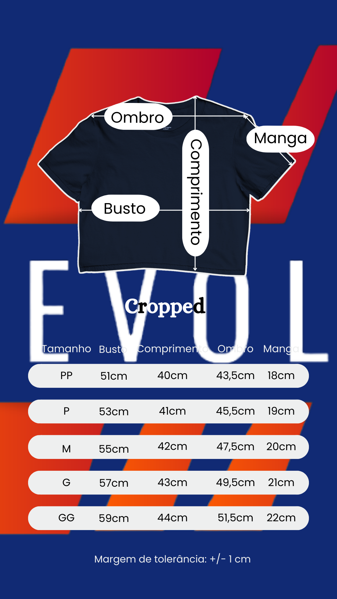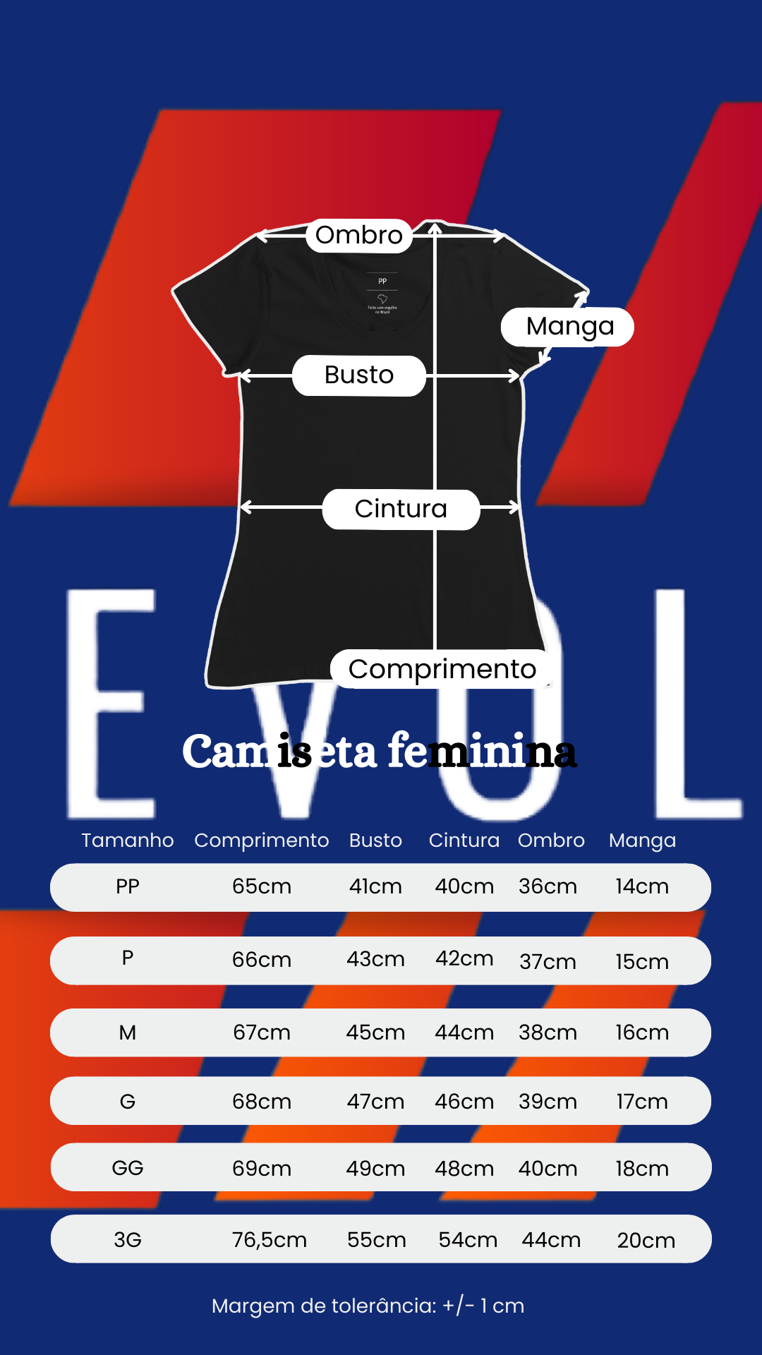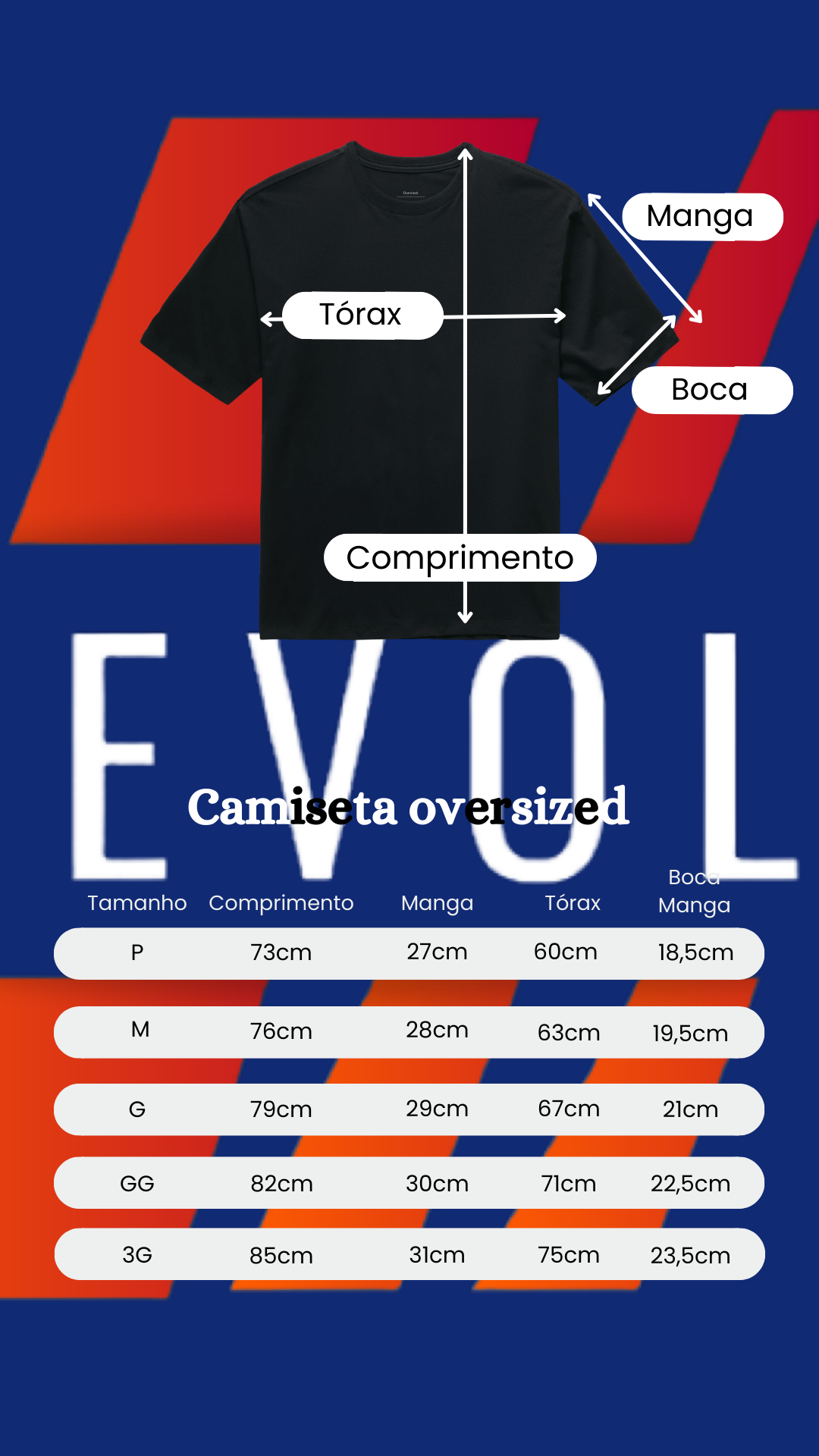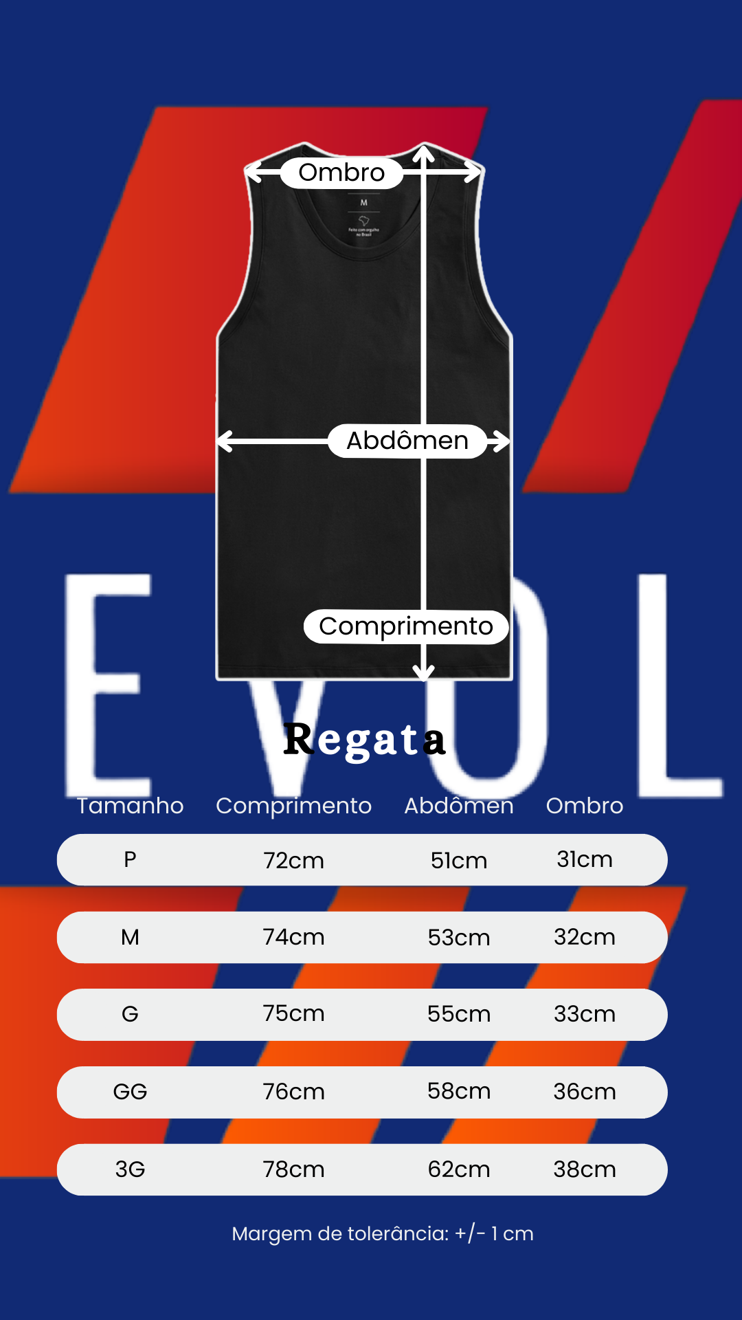 Elite da sua REVOLT, compare as medidas abaixo com uma peça que você já possui e gosta do caimento.